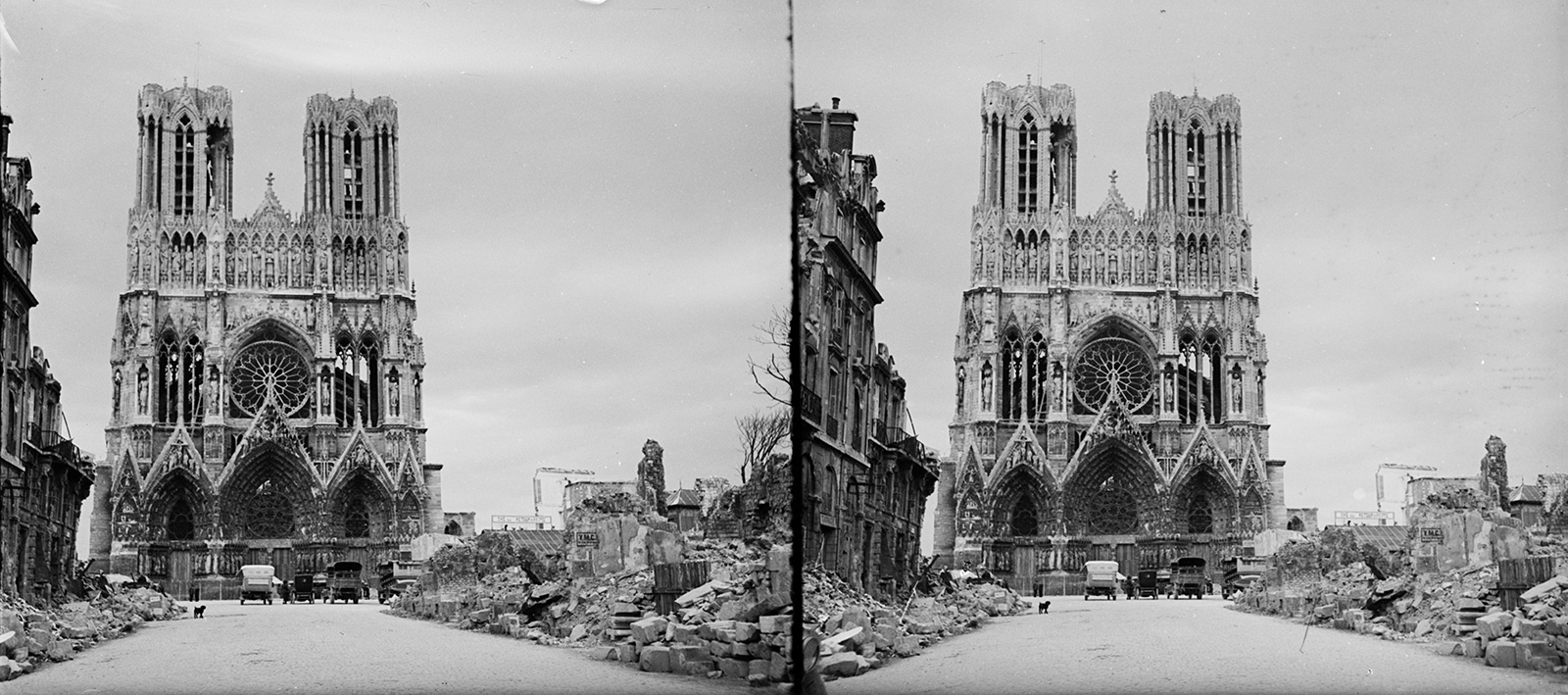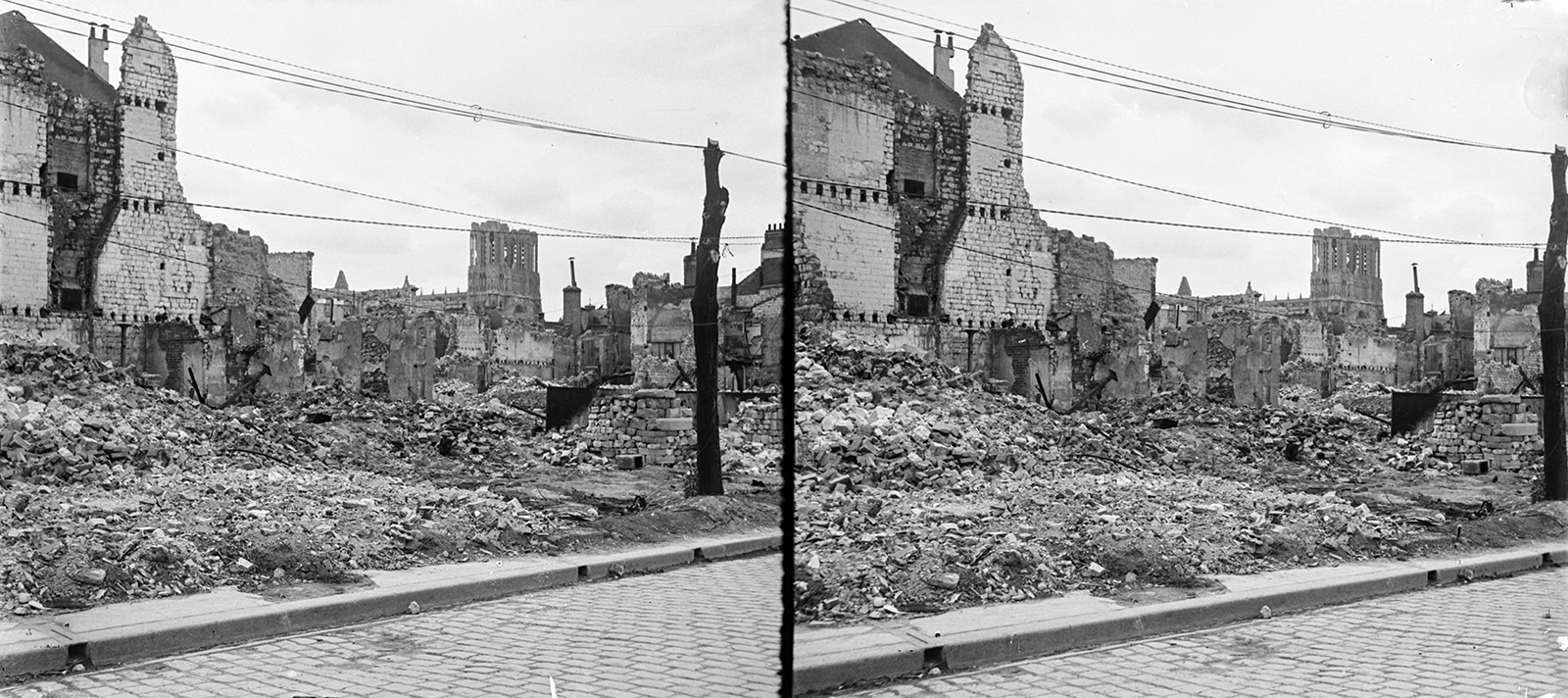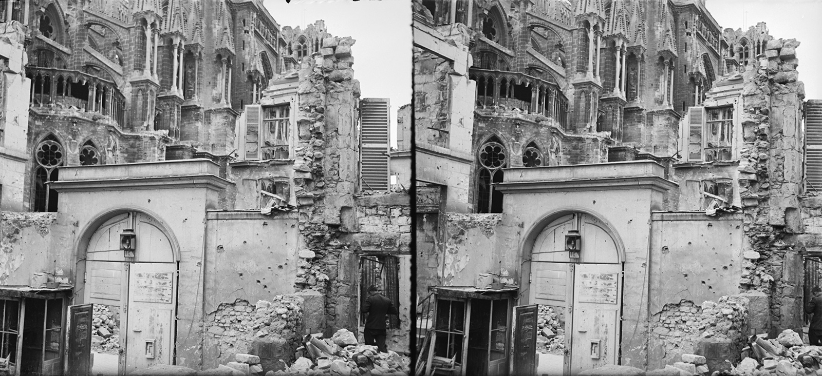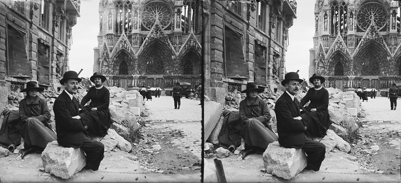 This set focuses on Reims after its bombardment during the Great War, and was almost certainly taken during the War. I make the latter assertion based on two things – the equestrian statue of Joan of Arc, which was removed after the bombardment and later fire, is not present, and the rubble is far from cleared up (as it was by 1919). The post on A.O. Fasser’s set from Reims confirms some of this. And yet, we already see ruins tourism in action here – people walking about the ruins, even selling souvenir postcards outside a shoppe next to bombed out buildings. Even before the defeat of the Germans, people were visiting – and documenting – the aftereffects of the war.