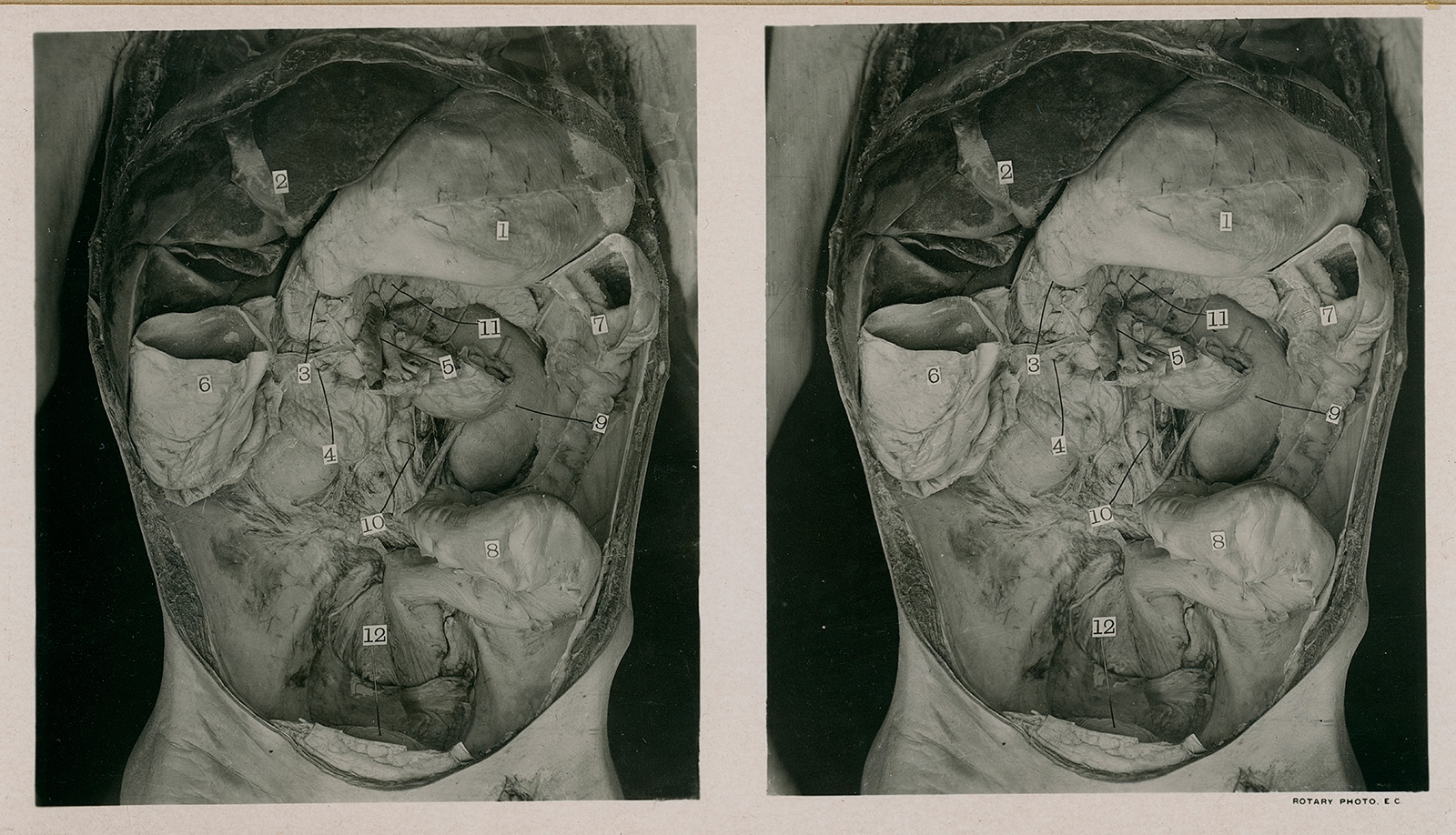 Which brings us to the topic of today’s post: the pancreas, as published by the Edinburgh Stereoscopic Atlas of Anatomy, 1st Edition (I have the Revised Edition as well). A little background here: Edinburgh University had been, throughout the 19th century, the premier institution for the teaching of anatomy. This was partially due to the fact that, unlike most places, Scotland allowed the autopsy and photographing of cadavers – a practice frowned on by non-medical-professionals in most parts of the world. Students flocked to the great, multi-tiered autopsy theatre to watch skilled doctors slowly dissect human cadavers – there was no Gross Anatomy for first-year medical students back then! Never mind that some of the cadavers came from Burke and Hare; it was still tops in the world through most of the 1800s.